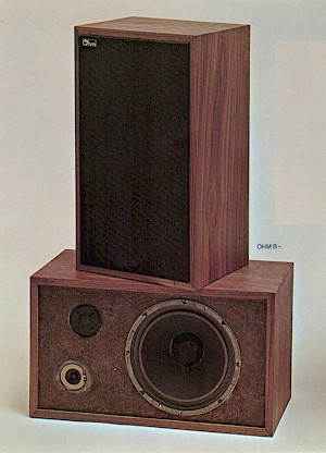 The B+ was the replacement for the Ohm B. It had the same woofer and tweeter but a second ”low” tweeter was added to handle the lowest two octaves of the tweeter’s range which vastly reduced failure problems. The cabinet size was the same and the sound was nearly identical. This was the direct competitor to the AR-3a.