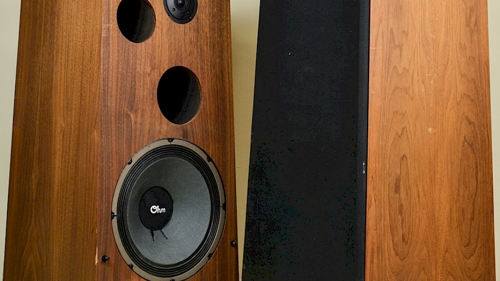 The Golden Age of Audio was ushered in with AR’s acoustic suspension speakers producing good bass from small boxes. They were driven by the new high-powered (up to 75 watt) tube amplifiers playing stereo LPs. The Golden Age faded with the introduction of CDs, DVDs and ended with ‘Home Theater in a Box’ and MP-3s thru earbuds. During the Golden Age speakers also made progress. Most became optimally-vented speakers producing more and deeper bass from smaller drivers and boxes. The Japanese produced monster AM-FM receivers with hundreds of watts. This was the peak of the Disco Era and Reggae Invasion. “Loud is Beautiful” was even one speaker manufacturer’s (Cerwin-Vega) motto. Although many exotic designs and materials were used in speakers during this period (like Walsh drivers, Heil AMT drivers, planar magnets, and electrostatics) the box speaker designs dominated the sales. The Ohm I (the letter – not the number) pushed the limits of box technology.