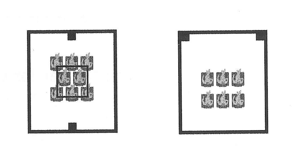 One subwoofer in the corner. Not something that we recommend, but a very common placement that a lot of home theater receiver manufacturers recommend. The result was significant difference from side to side (not in terms of imaging, but seating position). The whole stereo image was a little off center in the direction of the subwoofer. The best position front to back was in the middle of the room. Moving farther back made the bass “ringier,” especially when approaching the back 1/8 part of the room or the front 1/4 of the room. Clearly the acoustic wall in the back was behind the actual wall, probably an effect of the unusual construction. Too much variation from side to side.
