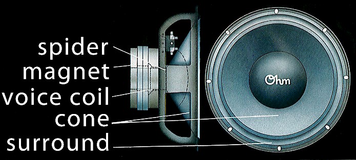 The spider is the part of the woofer that centers the voice coil in the magnetic gap. If the spider is pushed beyond its linear range, the voice coil can tilt and hit the sides of the gap. This generally causes a rubbing or scraping sound. If it continues for some time, the spider can tear, and the unnatural sound will be heard at all listening levels. This will require repair work; so again, turn the amplifier down at the first sign of these un-musical sounds. If both the surround and the spider have plenty of linear excursion and your amplifier has plenty of undistorted power, eventually as you play louder and louder, the moving parts will ‘bottom’ on the chassis or magnet assembly. This typically makes an excessively loud crack like a shot from a gun – even like a machine gun. This is generally very damaging and the speaker will usually need maintenance.