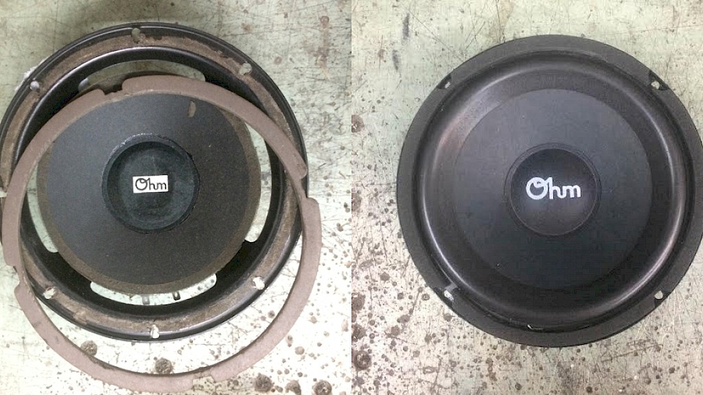 The surround is often the most troublesome. The surround is the flexible membrane between the cone and frame of most traditional woofers and tweeters. In the 1960’s a surround made out of artificial (plastic) foam rubber was developed to allow longer linear excursion for acoustic suspension woofers. It also damped the cone resonances better than the prior cloth or rubber surrounds. Plus, it was easier to use and cheaper to build. The foams they used were bio-degradable and would fall apart, whether in use or in storage, after ten to thirty years. This may be good for the environment; but it means many, if not most, consumer speakers made in the late twentieth century are in need of maintenance if they still have all the original parts. If you can poke your finger through the surround, it needs changing. It is best to use the original manufacturer’s surrounds to try to maintain the original quality. Many places do speaker re-surrounding; but few of them know how any given speaker was designed to play. There is major sound difference between playing and playing correctly.