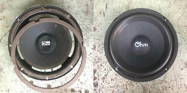 If the speaker has controls (switches or knobs) to adjust the sound, their internal parts like the contacts can oxidize over time. This will cause a scratchy sound from the speaker when the controls are used. It can become so severe that the sound drops out completely at some settings. Ohm used and continues to use ‘self-cleaning’ switches, so if you encounter this problem, just work the switch back and forth a few dozen times and the problem usually goes away for many more years.
