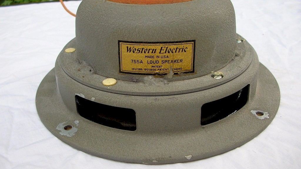 This was a voice speaker developed for the Bell Telephone system to provide intelligible, natural-sounding voices in offices, phone booths and railway platforms. http://vintagehifiexperience.blogspot.com/2006/08/western-electric-755a-fullrange.html