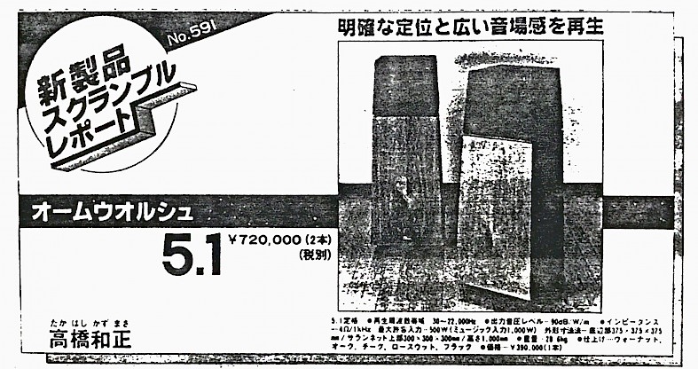 Their ‘voice’ was quite different from our Ohm speaker or any others I had ever auditioned. I was familiar with the voicing war in the US: East Coast sound versus West Coast sound. AR and KLH versus JBL and Altec. Laid back with concert hall response curves versus very forward with voices in front of instruments. These Japanese speakers took the West Coast sound and put the vocals all the way up in your face, if not in your lap!