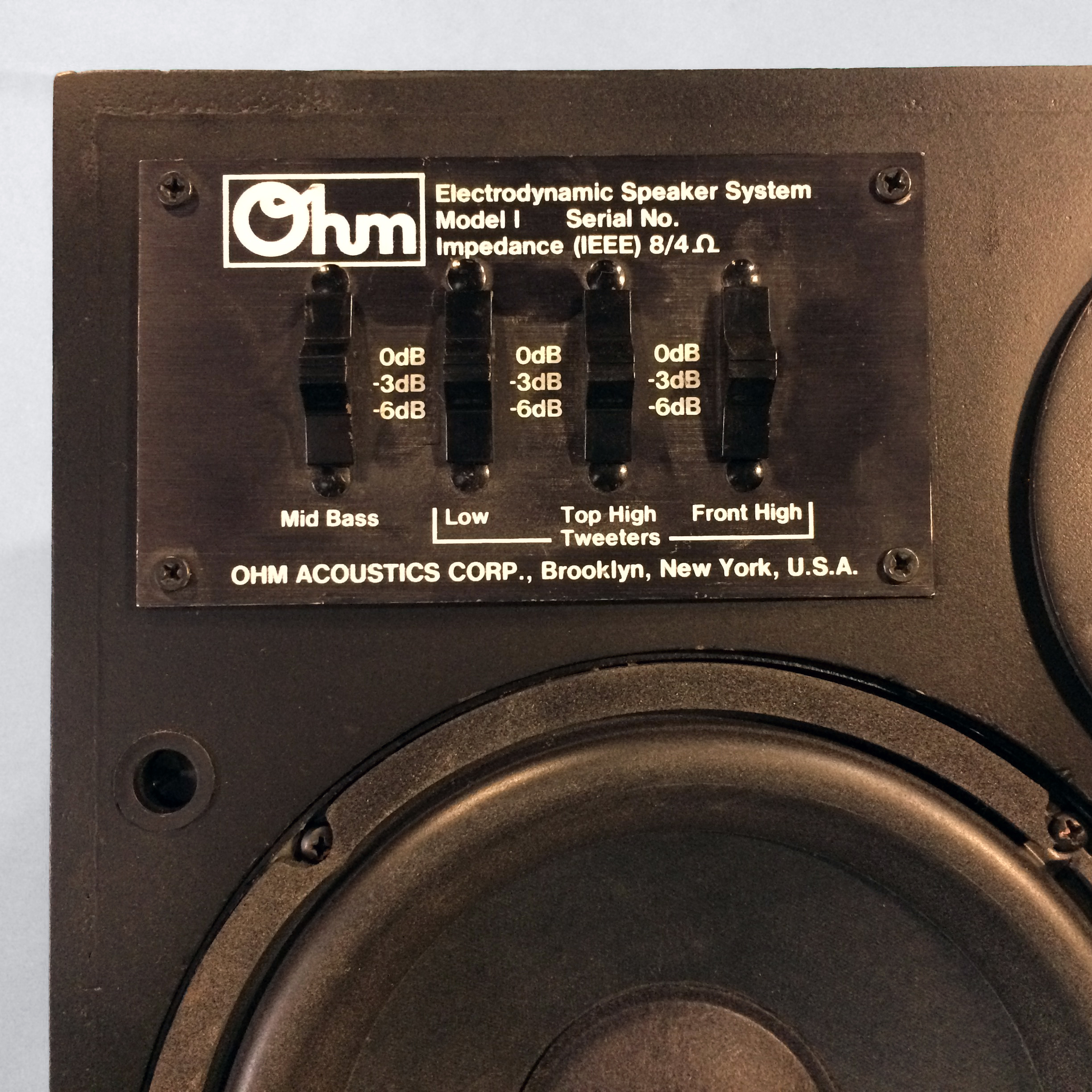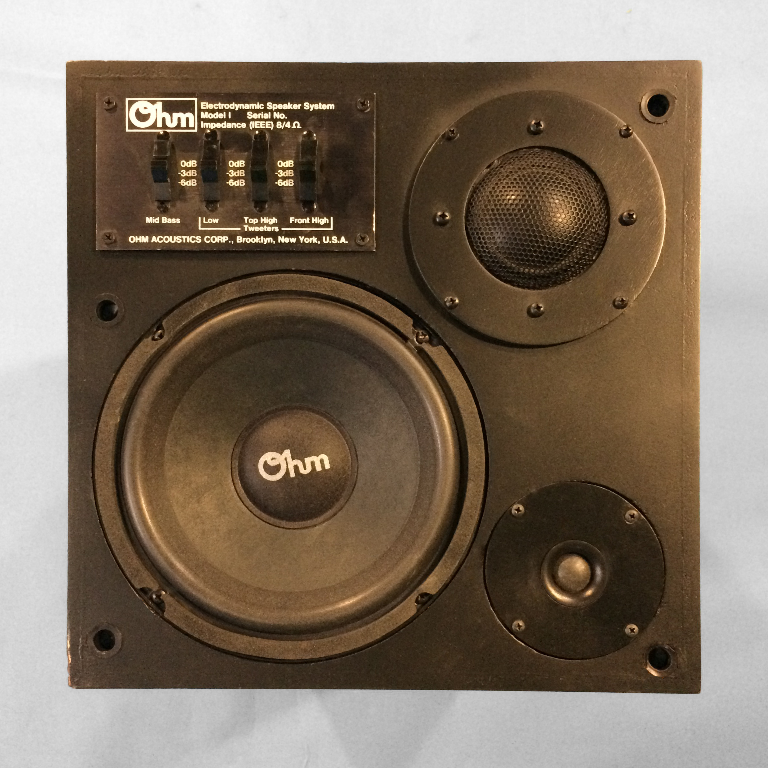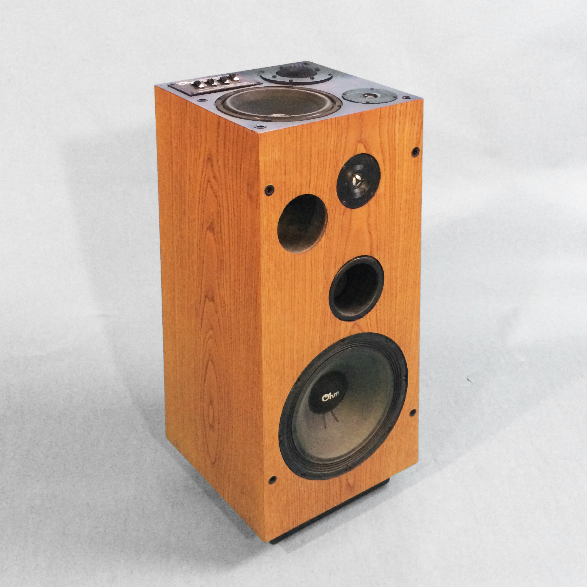 s-054_oak | | B2Real rarity! This speaker was the smaller version of the monstrous Model I. 12” subwoofer and 3/4” dome tweeter on the front, 6.5” omnidirectional midwoofer on top. Dynamic, spacious sound with a lower profile than most floorstanders. Like most Ohms, they sound best against the wall. Ready to ship in 2-3 weeks. | Walnut | up to 7000 | 100-1000 | $3,000 | $3,000/pr | |