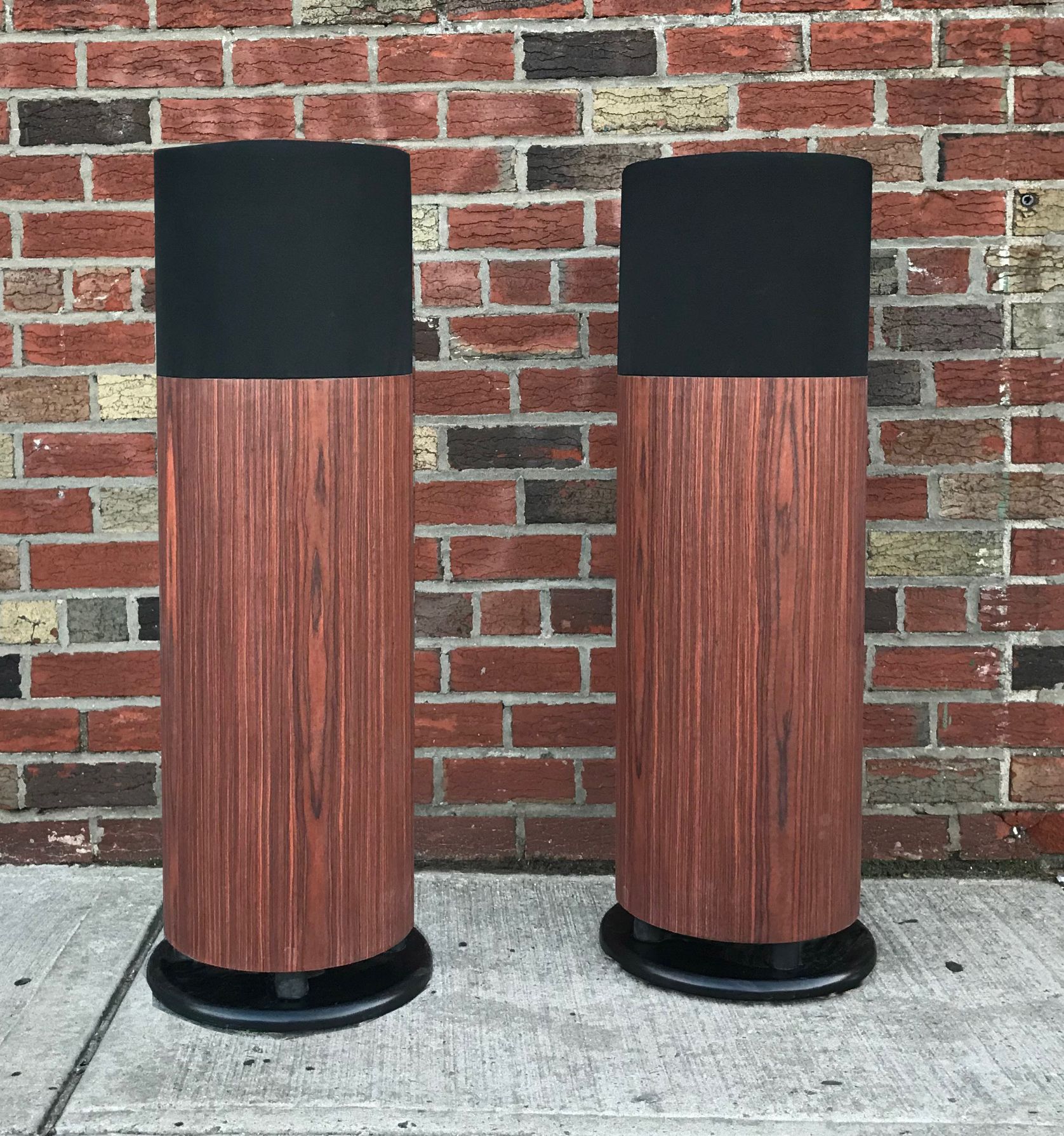 s-170 | | SSC-4900This rare rosewood veneer is worn, but beautiful. Stock photo, not actual item for sale. The new Super Sound Cylinder has all the sonic attributes that have made the rest of the Walsh family a standby in stereos and home theater systems across the world, but now in a sleek, cylindrical form. This cabinet design allows us to make a lighter weight product that takes up less space in your room, without compromising the sound. Our years of experience making smaller Sound Cylinders in the 80’s give us the ability to expertly design and construct cabinets in this shape, which inherently eliminates the resonance and reflection problems characteristic of designs with corners. | Rosewood | 800-8500 | 70-300 | $6,160 | $4,900/pr | |