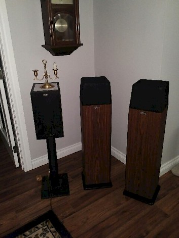 First thoughts…they are even nicer in person than in web photos. They possess a classy elegant simplicity and the veneer choice we made has them blending in very well with our wood furnishings as well as wood veneer flooring. They don’t really even look like speakers, more like nice pillars. The WAF is huge. My wife loves them and is very pleased to see the Black Klipsch RB61 IIs mounted on black metal stands removed from the living room.